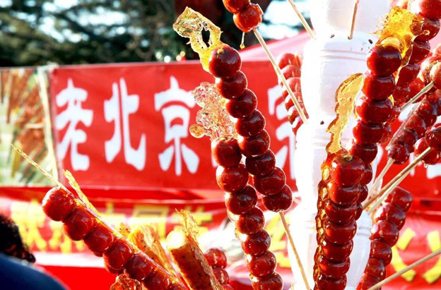 老北京的糖葫蘆特別養(yǎng)眼,個頭大、各式各樣、色彩紛呈,一口咬下去,滿口甘甜。不論是炎炎夏日,還是寒冷冬季,都給人一種清新之感,回味起來,欲罷不能。