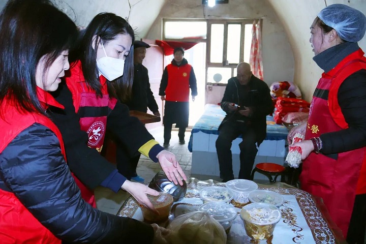 對(duì)于行動(dòng)不便的老人,志愿者們上門服務(wù),為他們送去熱氣騰騰的愛(ài)心午餐。