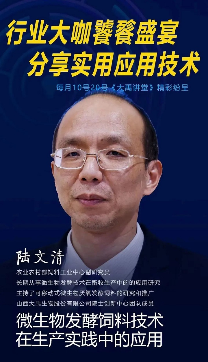 《大禹講堂》是大禹生物技術(shù)團(tuán)隊內(nèi)部技術(shù)培訓(xùn)、交流平臺,每月的10日、20日進(jìn)行兩期。本期陸文清老師重點講解了發(fā)酵飼料的生產(chǎn)應(yīng)用和糞污處理的發(fā)酵技術(shù)。